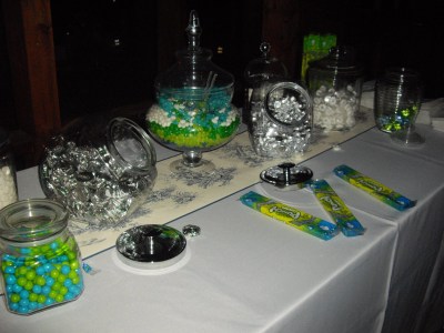 Years later, imagine my surprise and dismay when I read in wedding magazines that candy bars are sooo yesterday for favors. What?! A quick interview of my friends and family found that most of them had not even heard of a candy bar (“You mean like a chocolate bar with a custom wrapper?”) much less participated in so many that they were bored of them. Since then I have seen many entertaining sites and party planning gurus that use candy bars or dessert tables at their own parties.