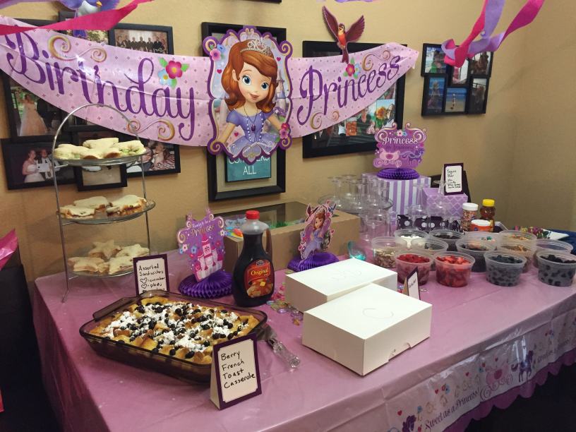 Little girls and princesses… maybe they’re taught to like them or maybe they naturally gravitate toward them. In either case, they go together like tulle and tutus. A popular request over the last few years is for a “Sofia the First” (a Disney Jr show) themed party, which is fun because Princess Sofia wears a lot of purple, i.e. more colors to decorate with than just pink and white. When my daughter requested one, I was happy to oblige!