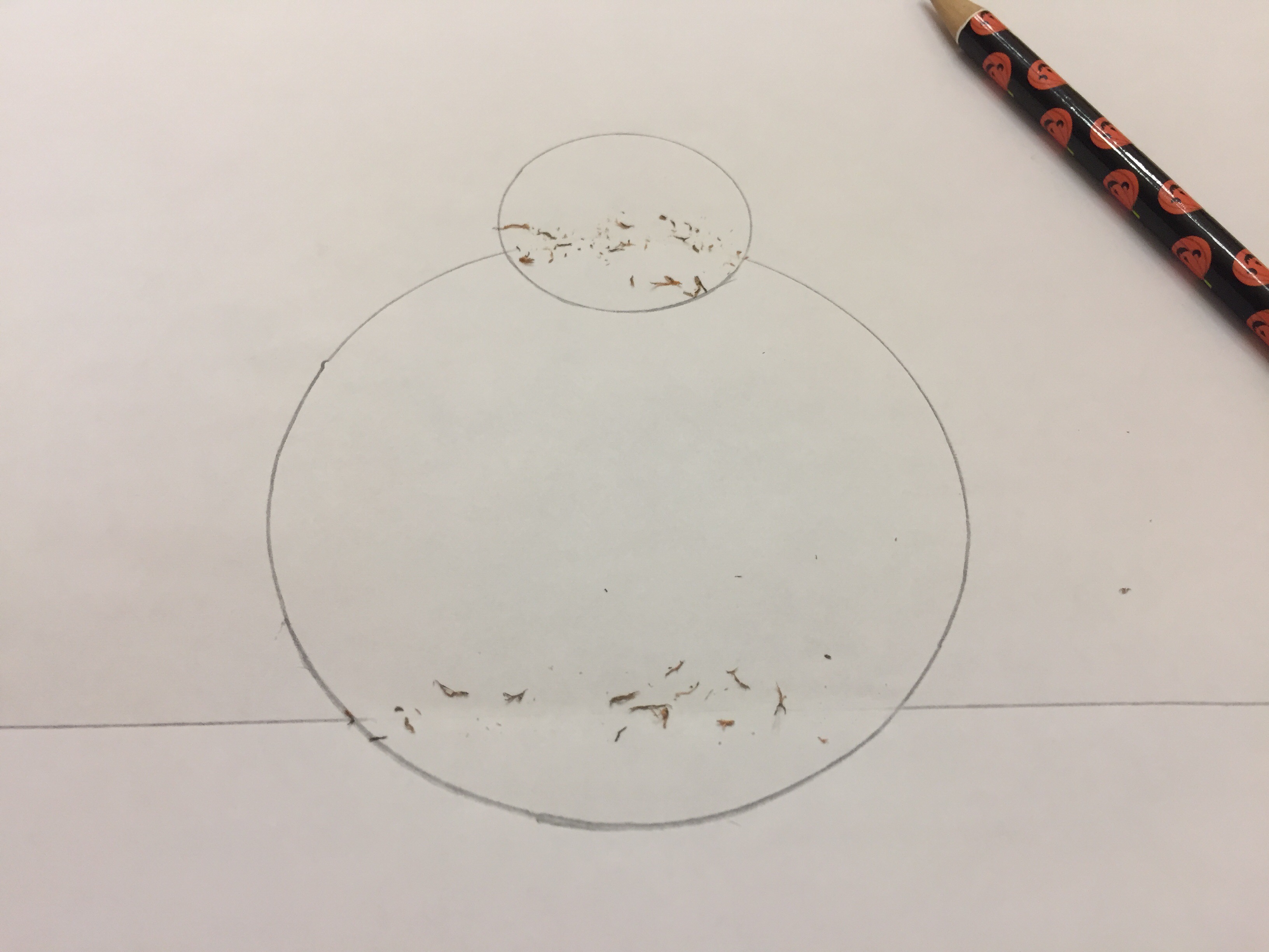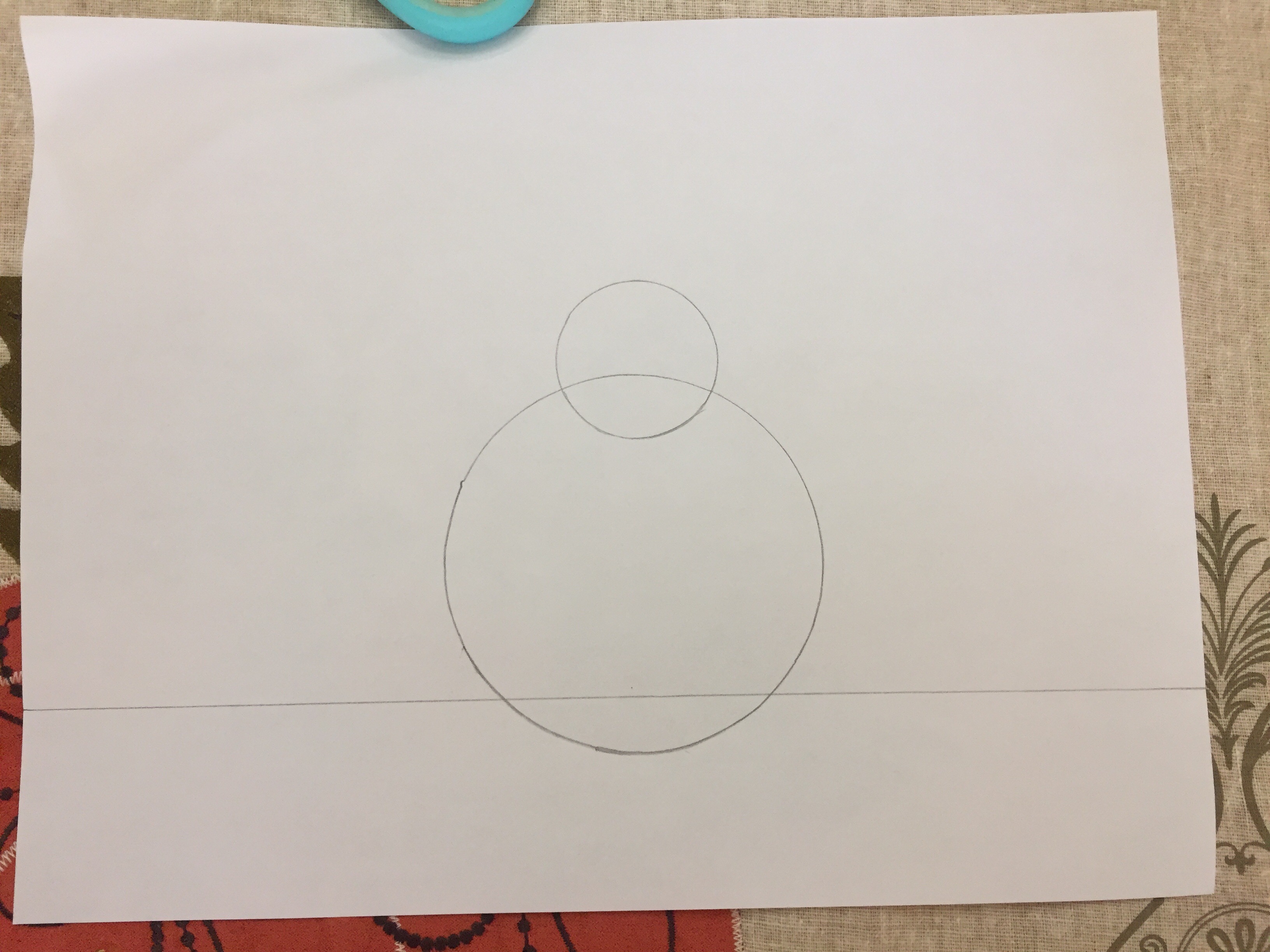 - Draw a smaller circle for the head, making sure to overlap the larger circle.