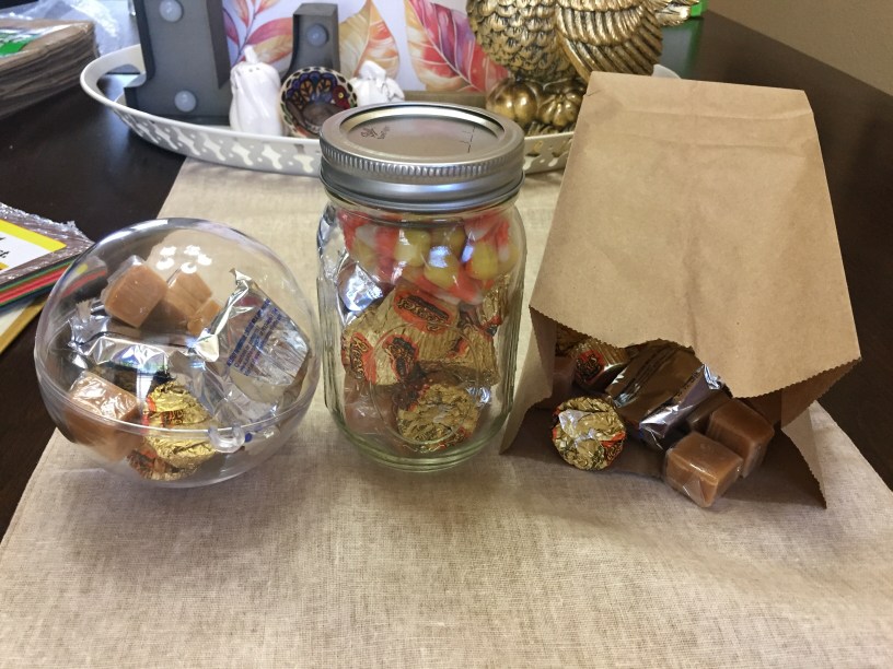 See what I mean? That’s a lot easier than a Valentine’s Day Cupid or Easter bunny, let me tell ya. And I’m going to show you just how easy to make they are by crafting three different favors with the same turkey design!