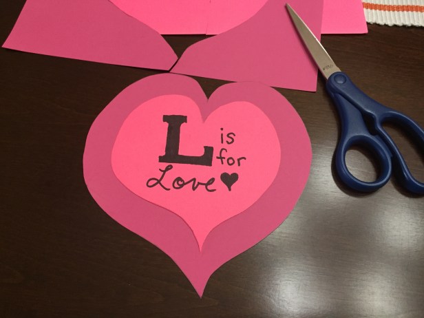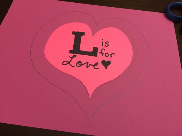 2. Cut out your shape around your words. I used a heart, but you can certainly trace a rectangle or circle using another object if you don’t like to freehand shapes.
