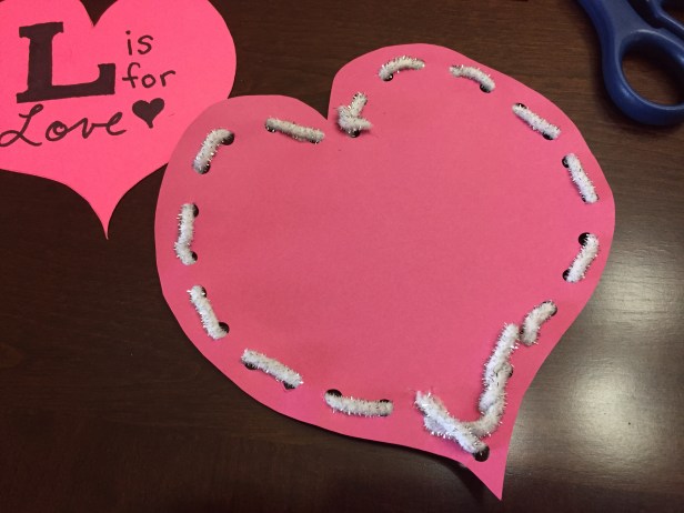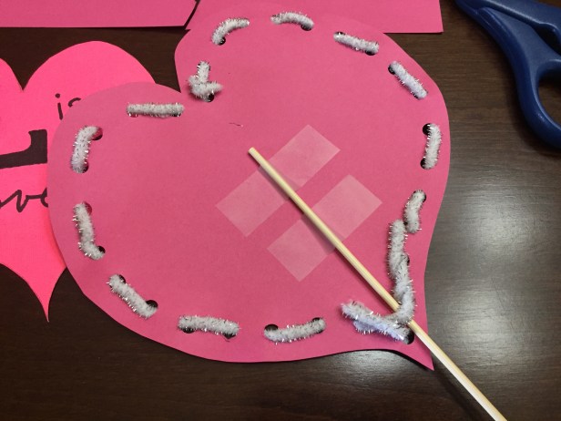 and wove metallic chenille stems through them. I suggest fun yarn or ribbon instead, though. It was a PAIN getting the stem through the holes without ripping the paper.