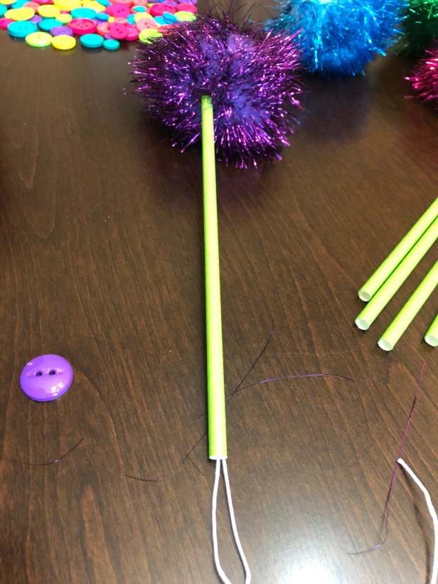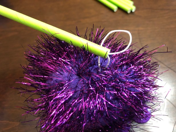 Your Truffula tree should now look like this with the twine sticking out of the bottom of the paper straw: