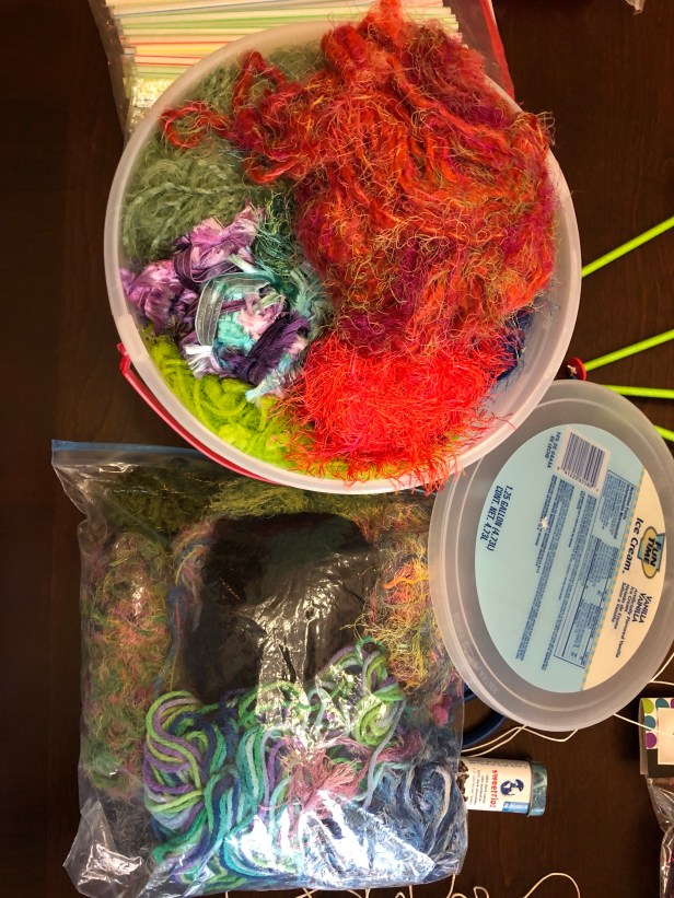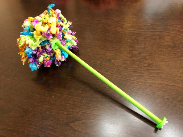 The great thing about yarn is there are even MORE colors and textures of yarn than there are premade pompoms. Check out this handmade beauty made from yarn scraps: