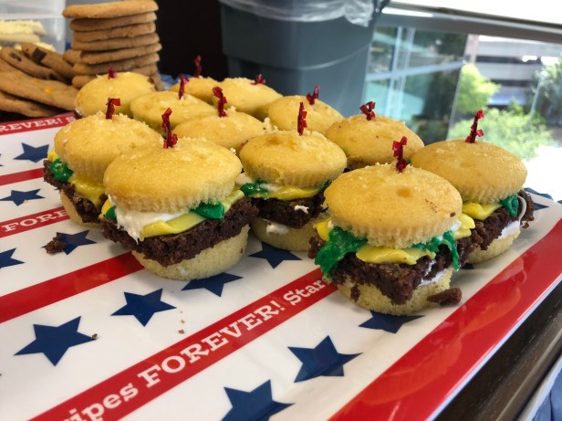 Who says cupcakes have to keep their traditional shape? You can cut them in half and put fun stuff in the middle, like brownies as seen below to make these “cupcake hamburger sliders”. There are also creative ways to sculpt new designs by cutting your cupcakes up, such as making little animals and cupcake caterpillars. There are TONS of these ideas available online, so get thee to a search engine.