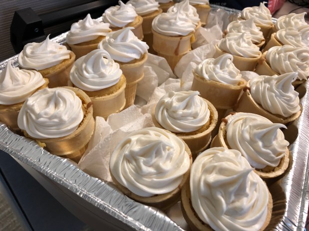 - We found yellow cake batter worked better than white cake batter, but it could have been oven error, too. The white cake ones weren’t evenly cooked and we had to throw them out. 😦