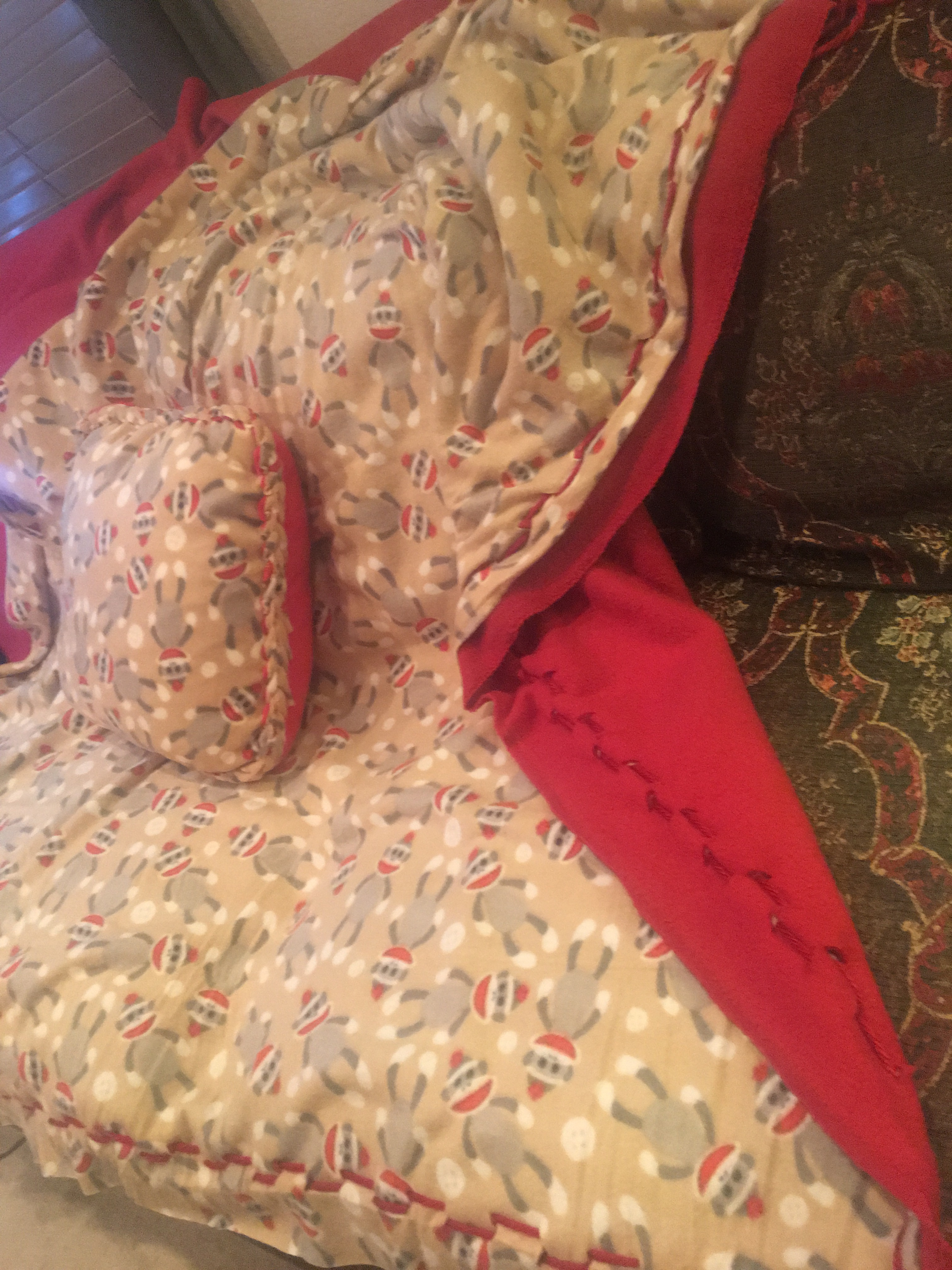 Look at that fabulous fleece blanket you made. Go ahead. Ooo and Aahh. We’ll do it with you: Ooooo. Aaaahhhh.