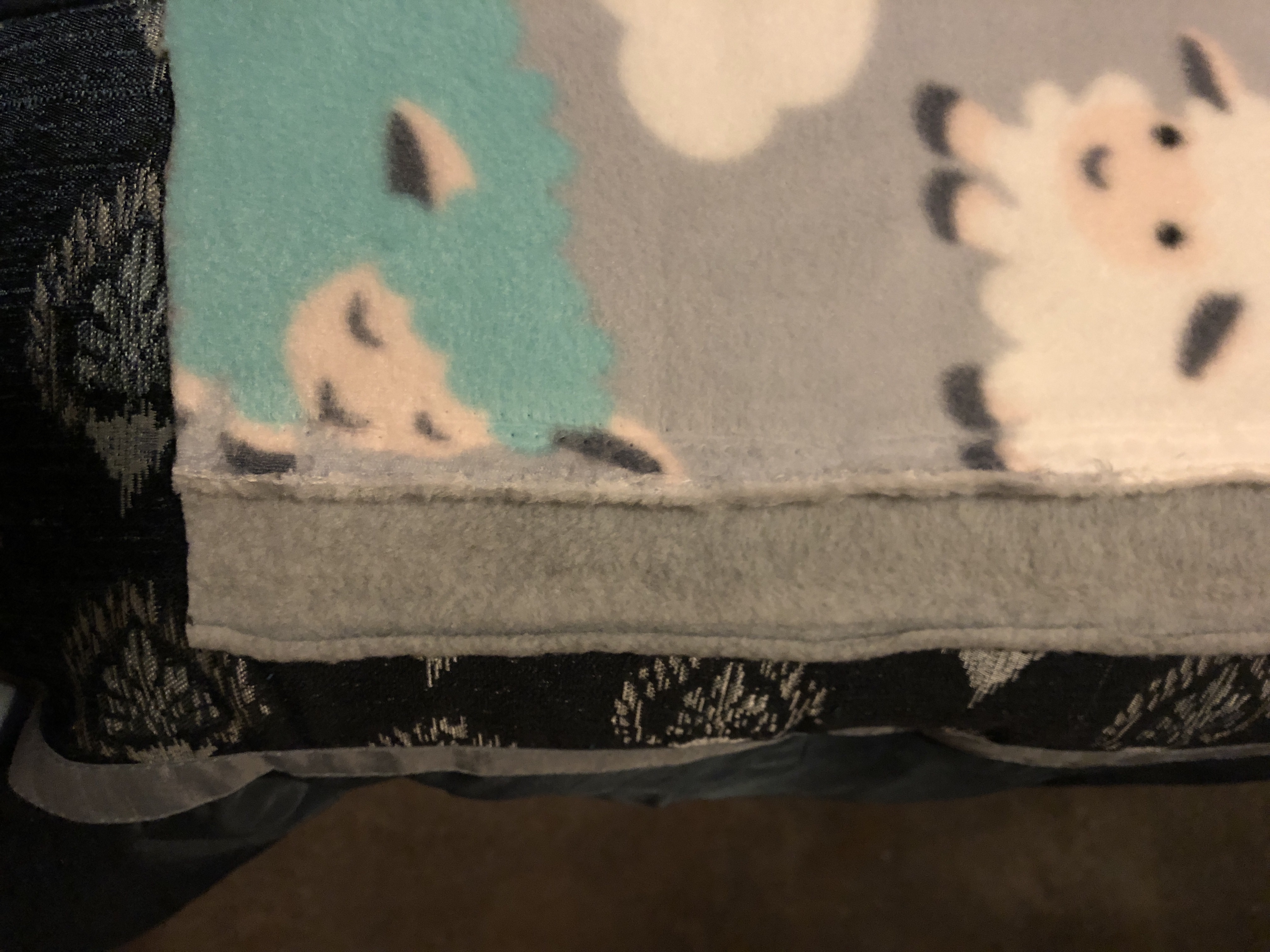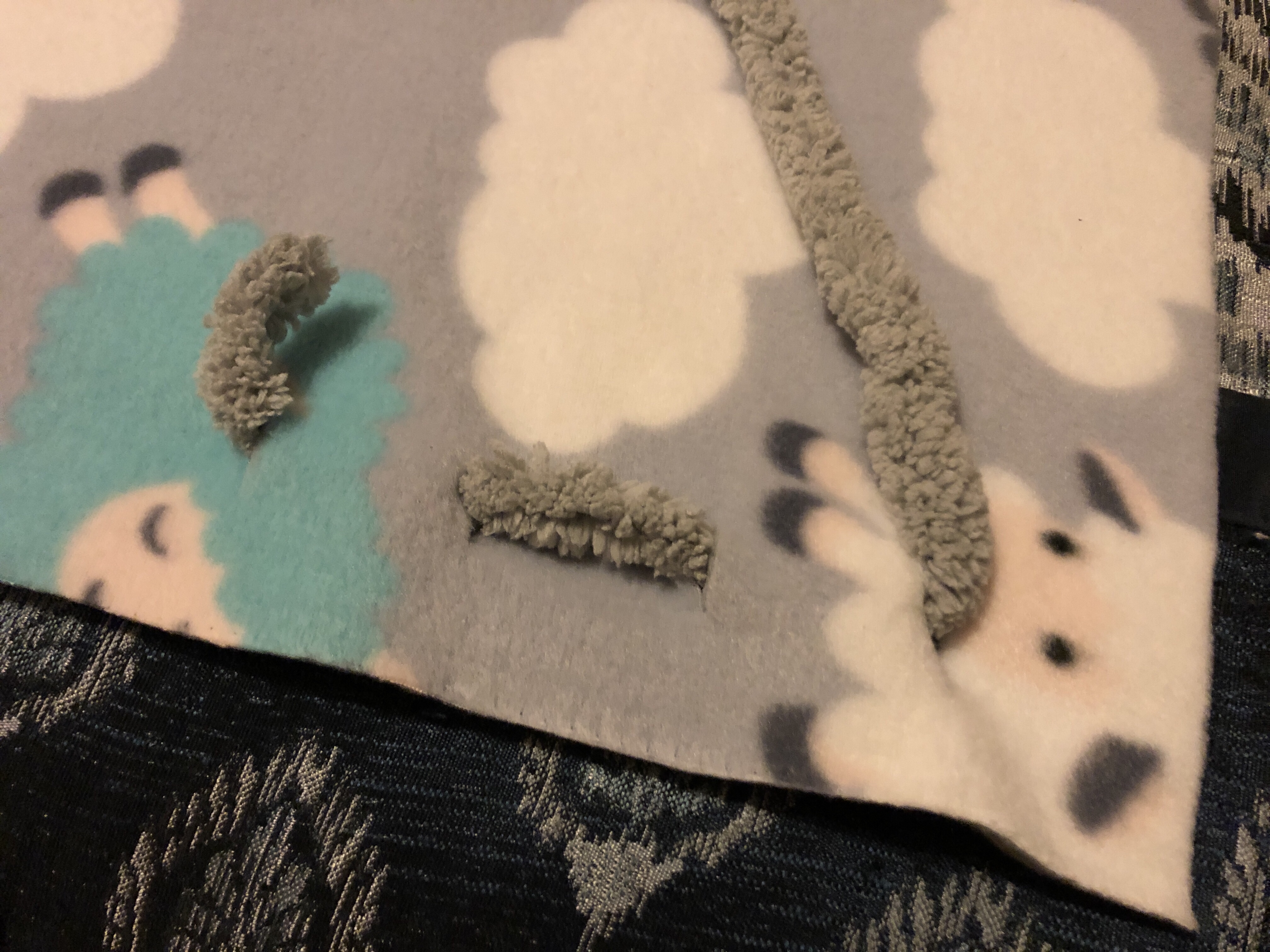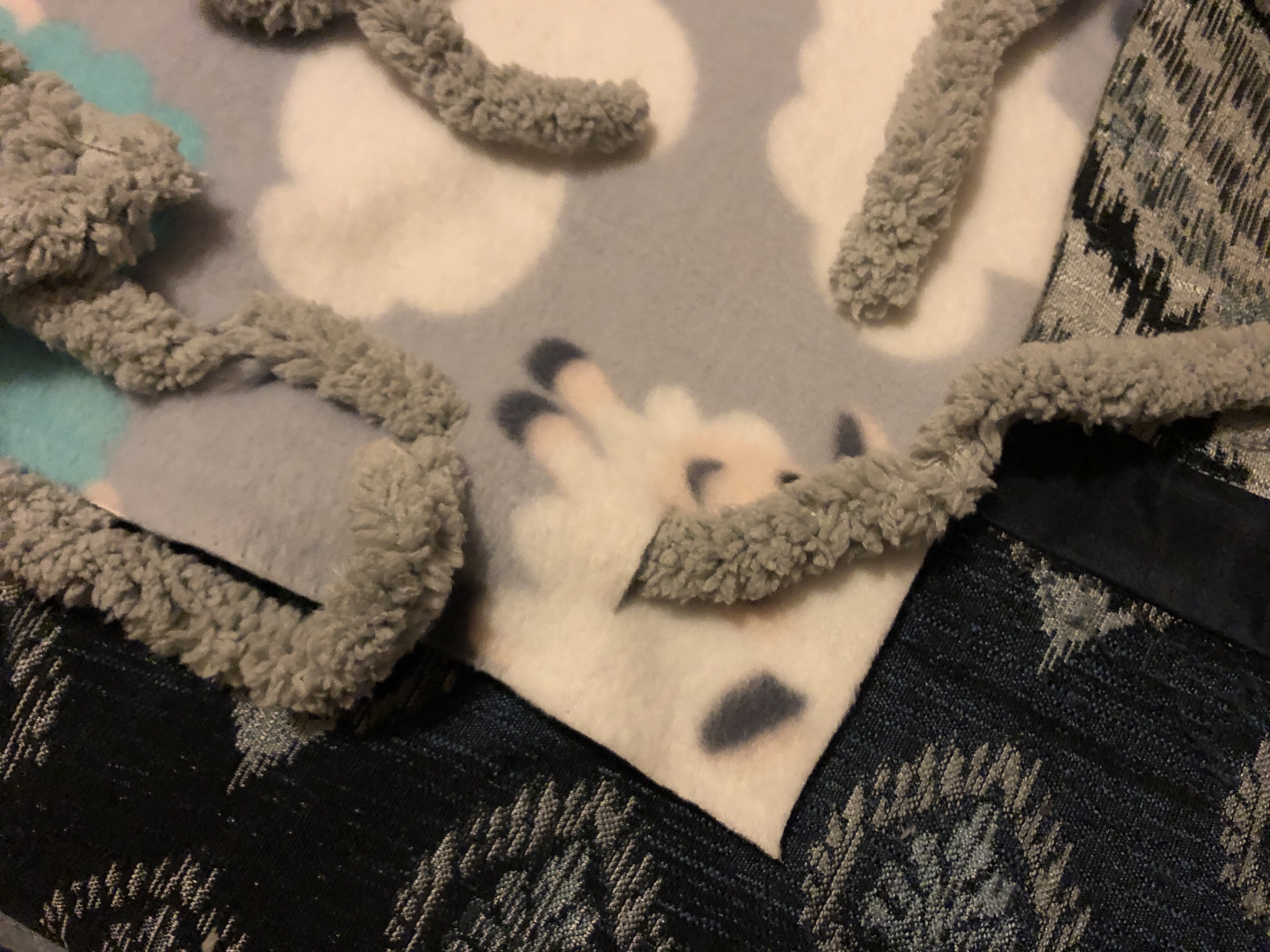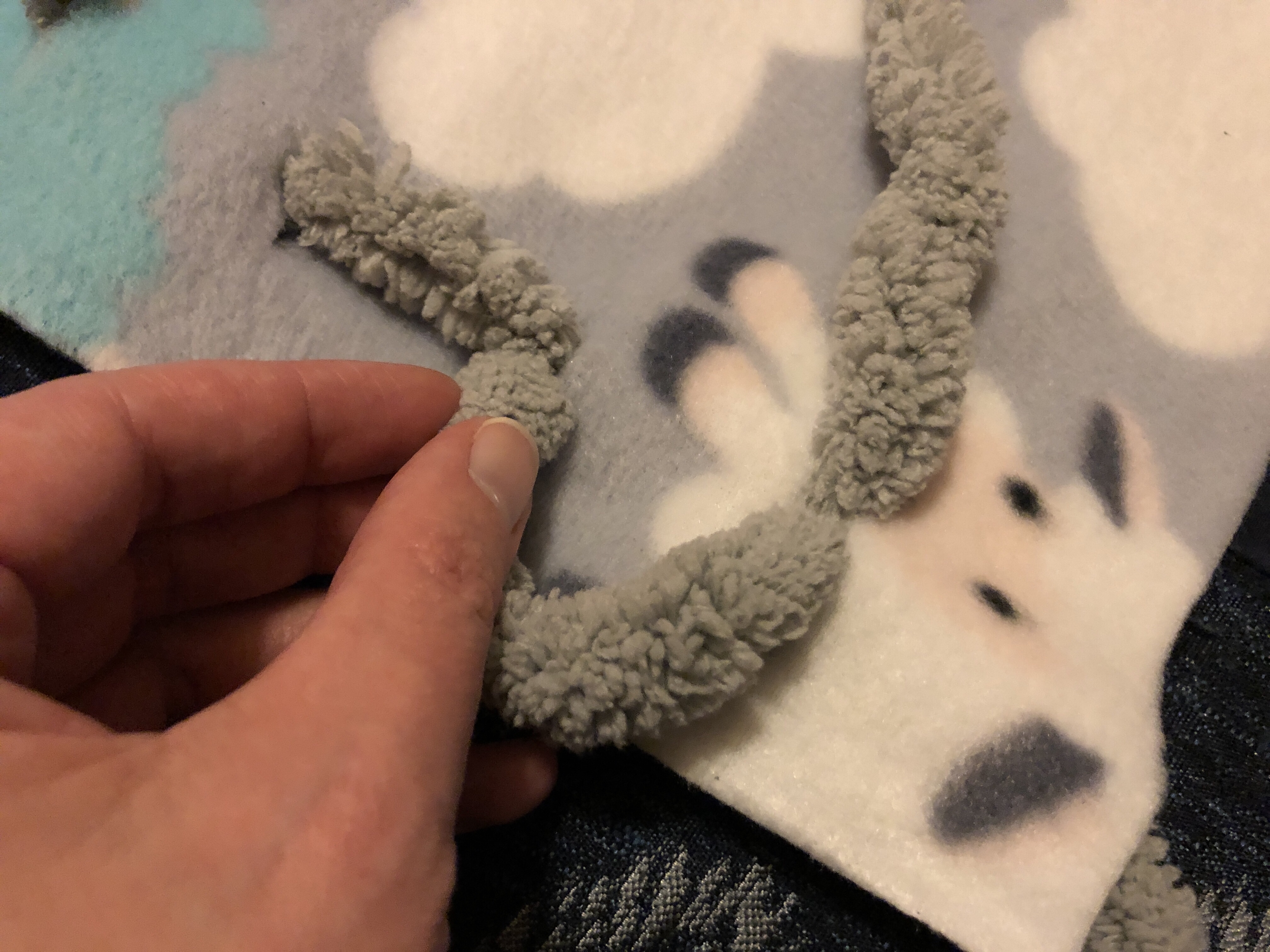 4. Now that you’re all cut and trimmed, decide which side of your blanket will be the head. You’ll leave that side alone. Instead, take the next side and fold the entire side in by an inch.