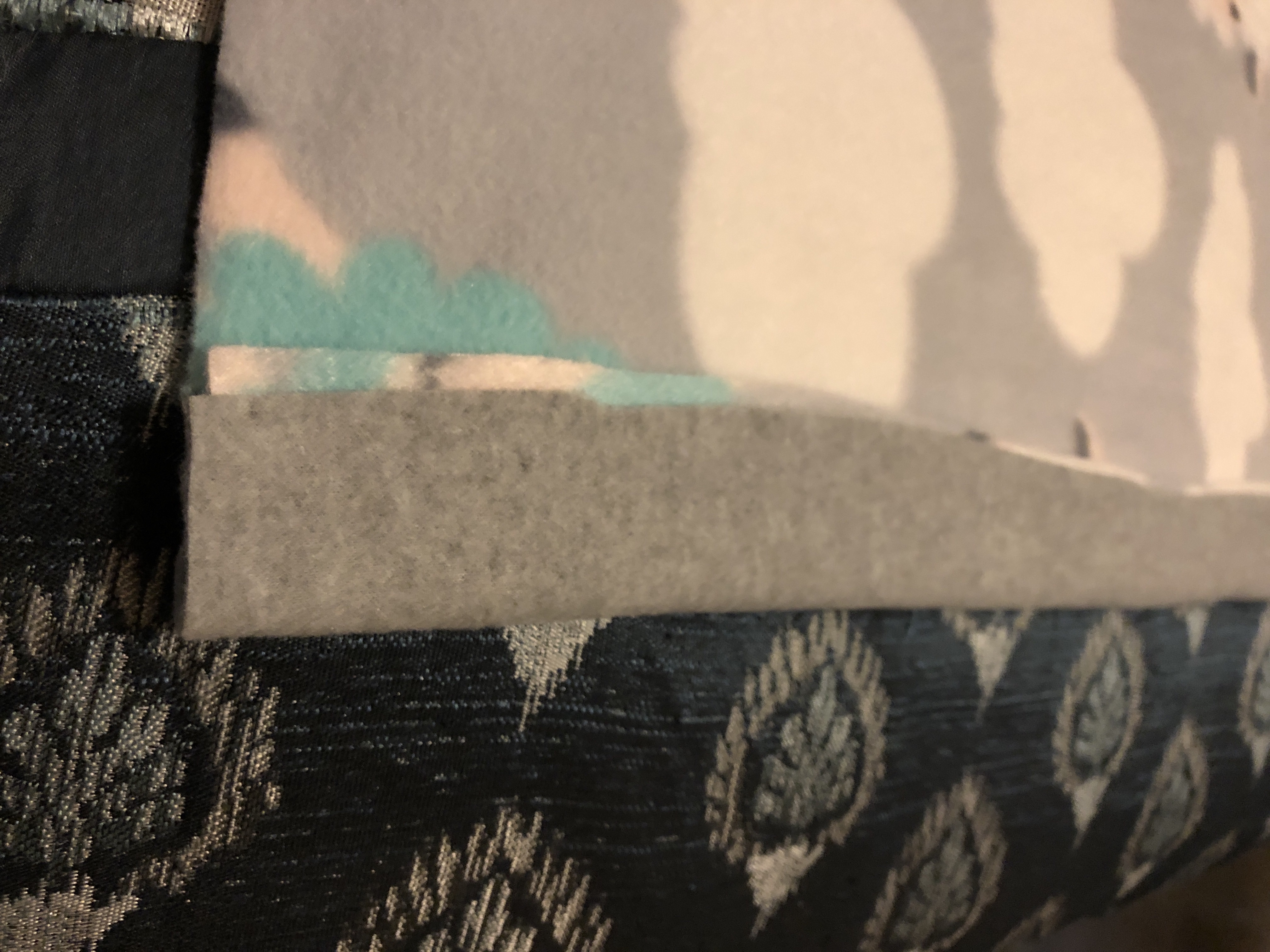 You may find that your fabrics are different widths, and that’s okay! Just line them up on one side and don’t worry about the other. You’ll be trimming it in the next step anyway.