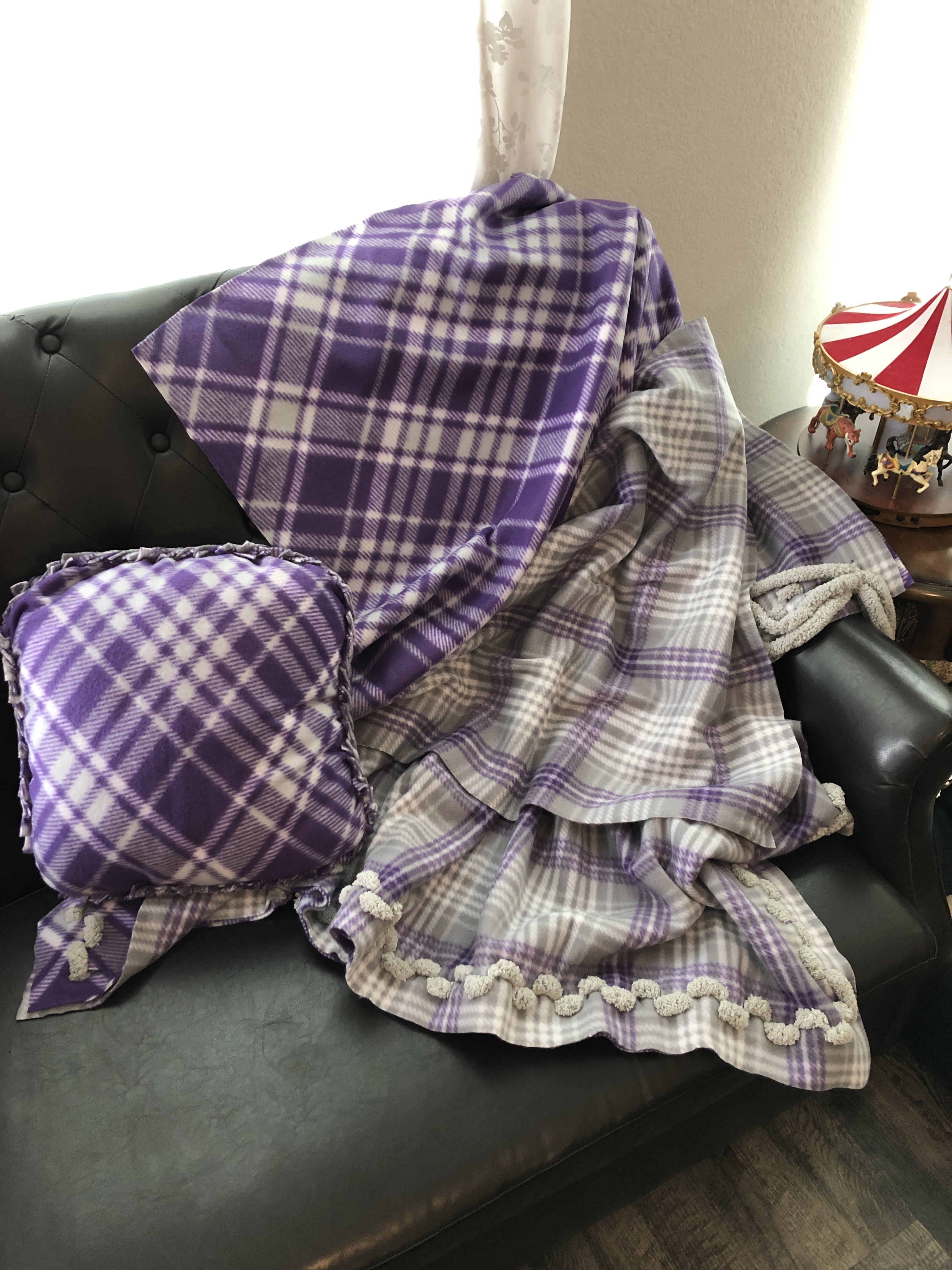 Look at that fabulous fleece blanket you made. Go ahead. Ooo and Aahh. We’ll do it with you: Ooooo. Aaaahhhh.