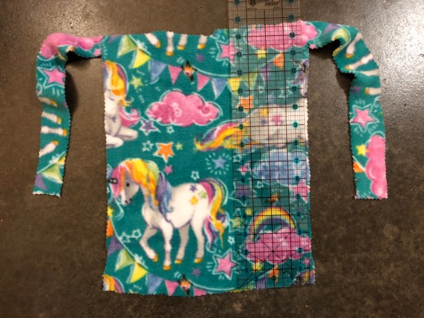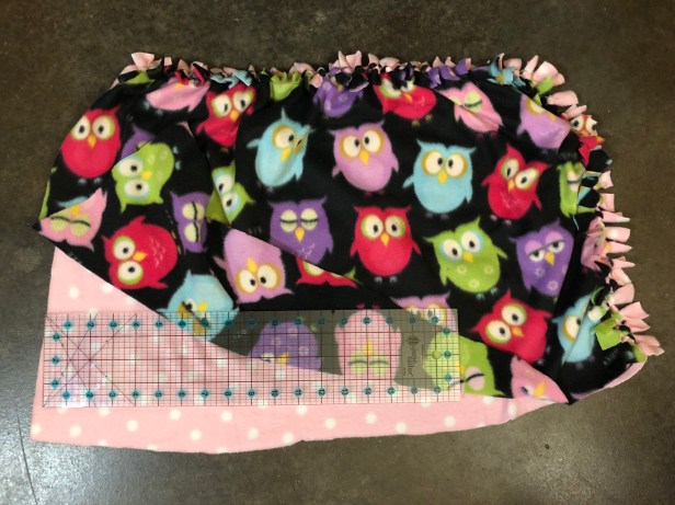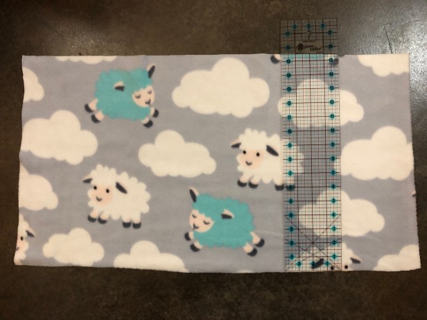 We’ve included a few shots below with a ruler to give you an approximate size to cut the fabric. The best thing about fleece? It’s no fray, which also means no sew for these projects!