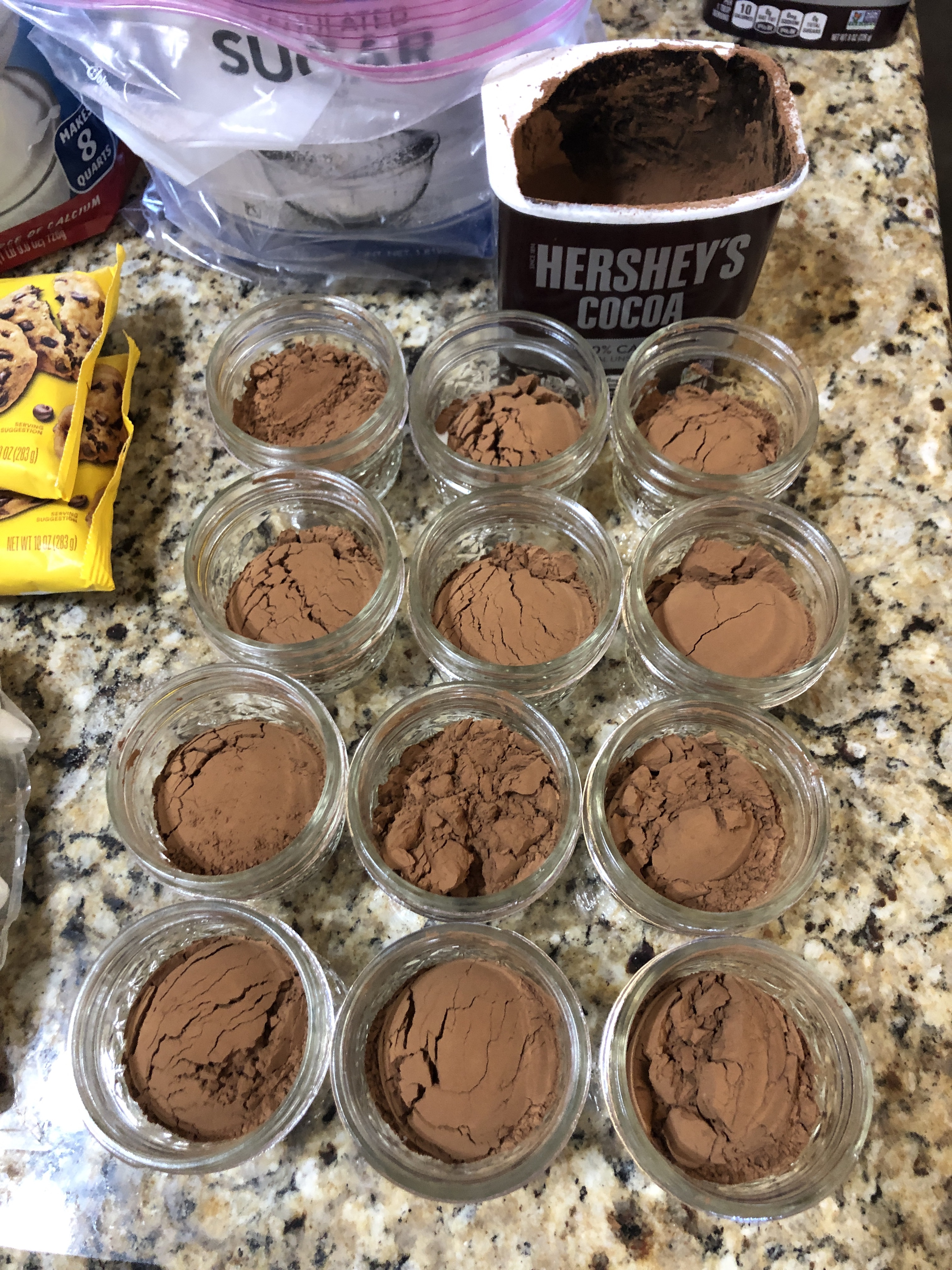 STEP 2: Add 2 tablespoons of cocoa powder to each jar.