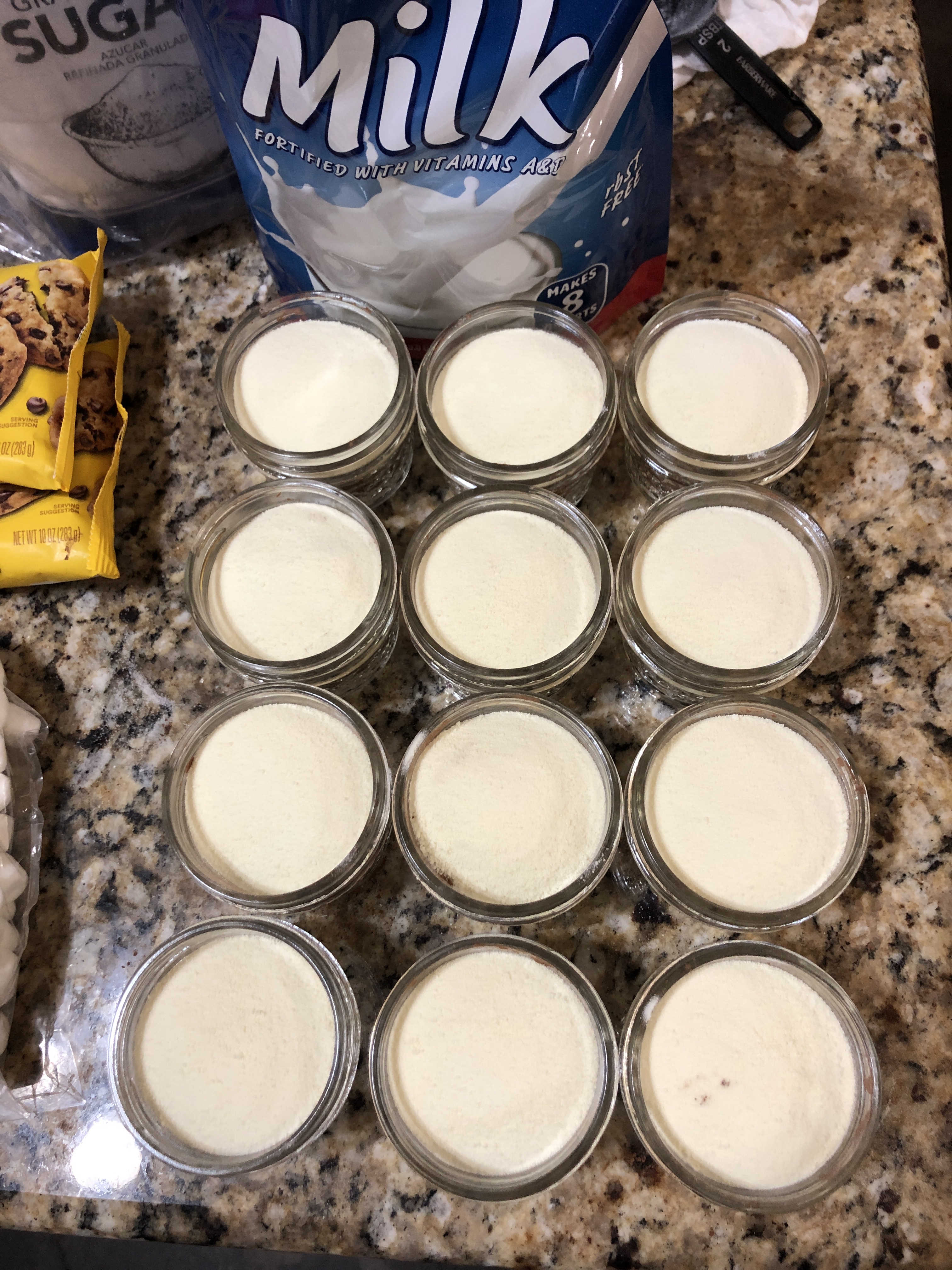 STEP 3: Add 2 tablespoons of dried milk to each jar.