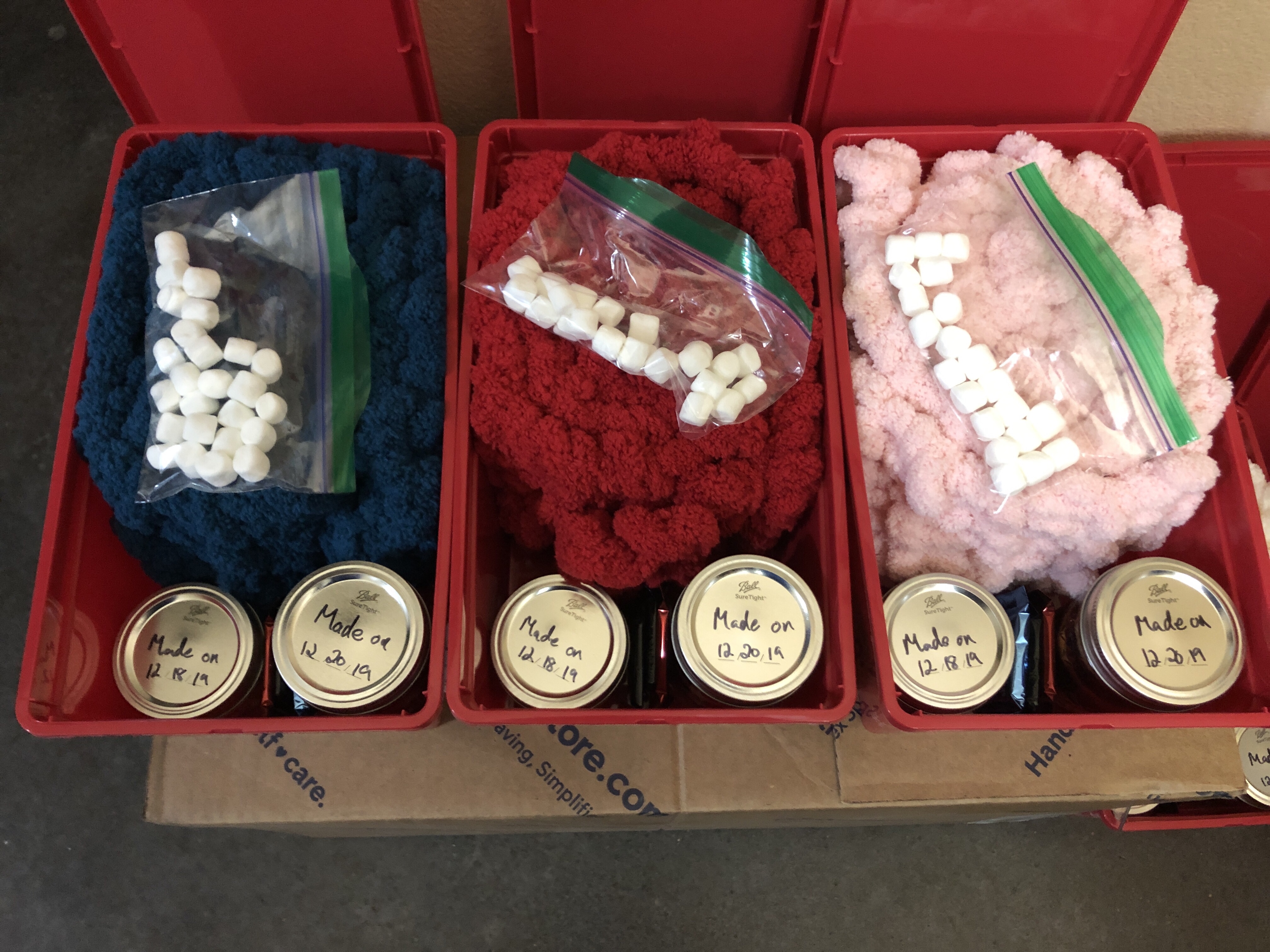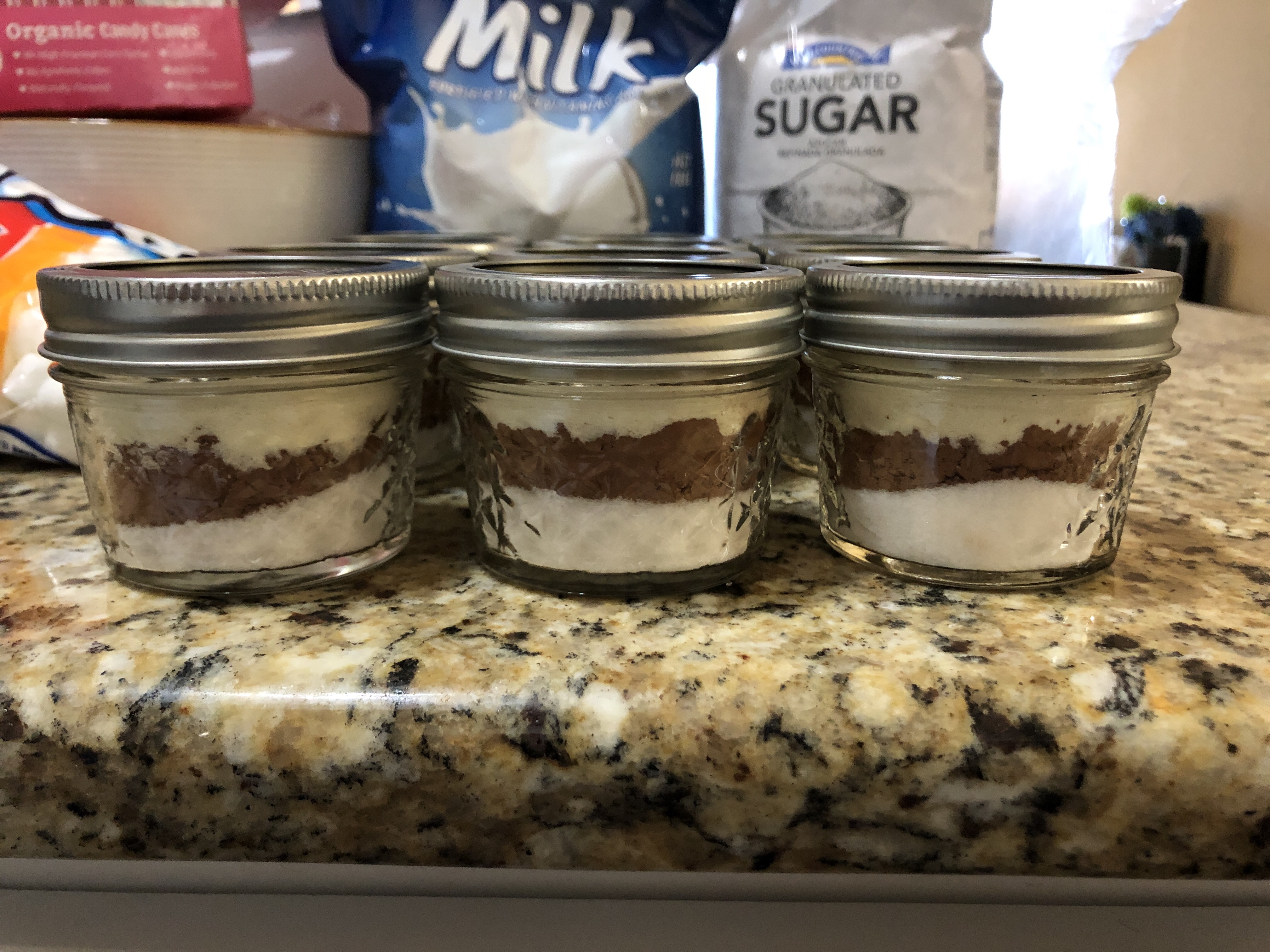- TASTE: Yes, you can always put in sweet treats like candy (and, yes, we did), but we like to take it a step further. Because it also needs to be easily sealed and transported, that meant an easy solution: mason jars! We added homemade, instant hot chocolate (recipe and steps below) to 4 ounce jars and “cakes” (steps below) to 8 ounce jars. That’s a little to drink and a little to eat, all on a night when you deserve the indulgence. If your recipients are more into salty snacks, these also do well and keep their crispness in mason jars.